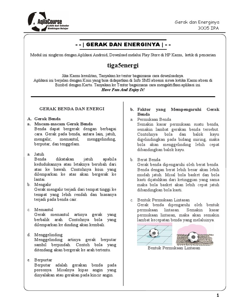 Modul Bimbel Kelas 3 KTSP 3005 IPA Bab 5 Gerak Dan Eenerginya