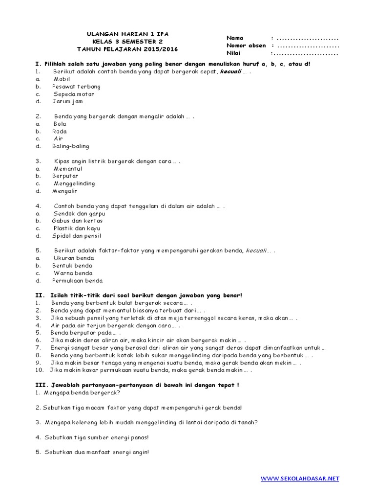 PDF) SOAL UTS IPA SEMESTER 2 | Yuli Mandang - Academia.edu