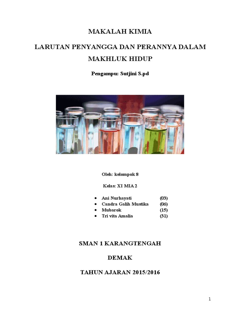 Makalah Kimia Larutan Penyangga Dan Perannya Dalam Makhluk …