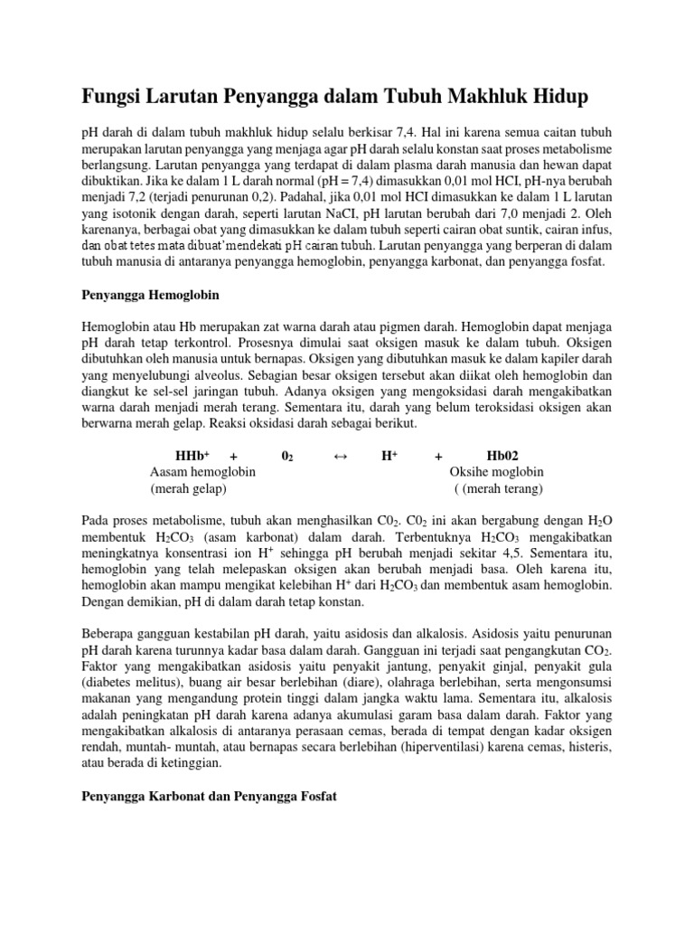 Jelaskan Fungsi Larutan Penyangga Dalam Tubuh Makhluk Hidup Dan …