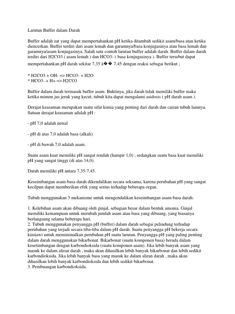 DOC) PERANAN DAN MANFAAT LARUTAN BUFFER DALAM KEHIDUPAN SEHARI …