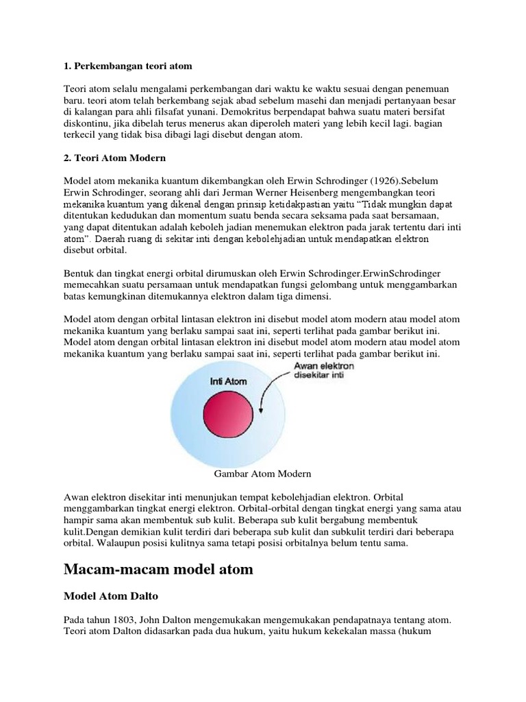 Gambarkan teori atom mekanika kuantum - Brainly.co.id