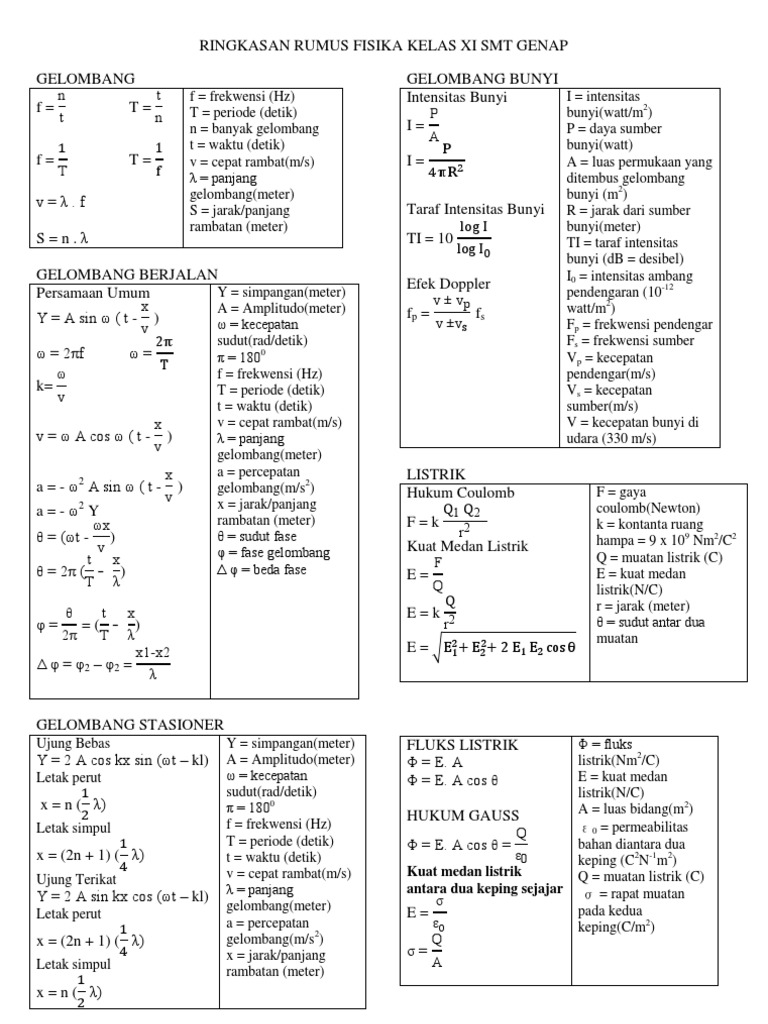 Rumus Fisika Smt Genap Kelas Xi Done