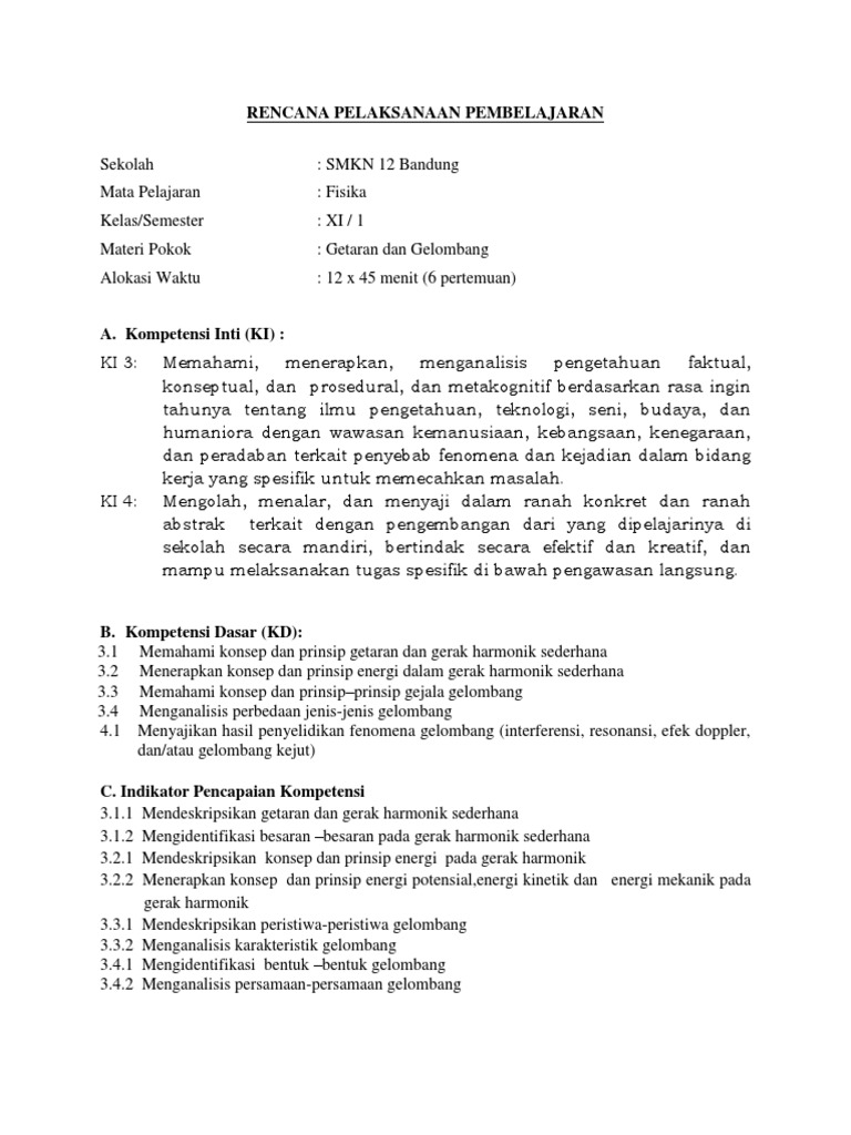DOC) RPP Kelas XI Karakteristik Gelombang (Kurikulum 2013) | Putu Fera Andriyani, S.Pd. - Academia.edu
