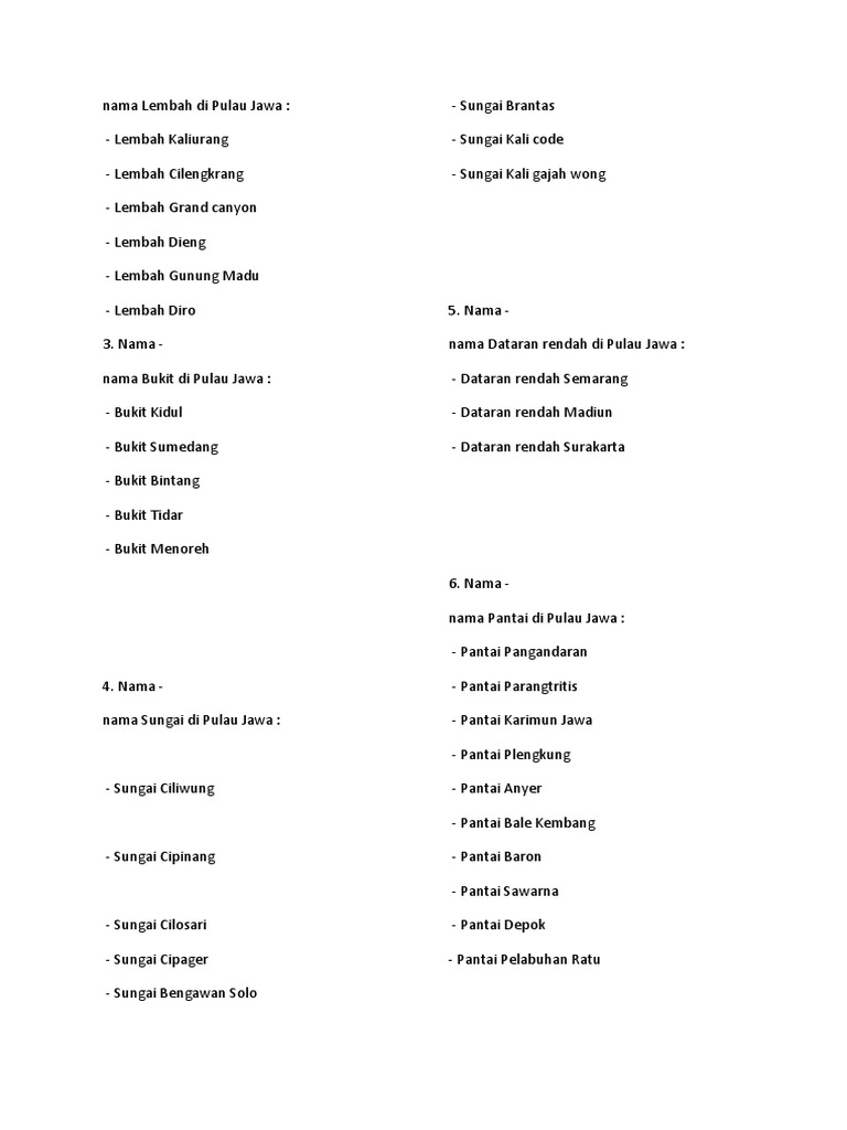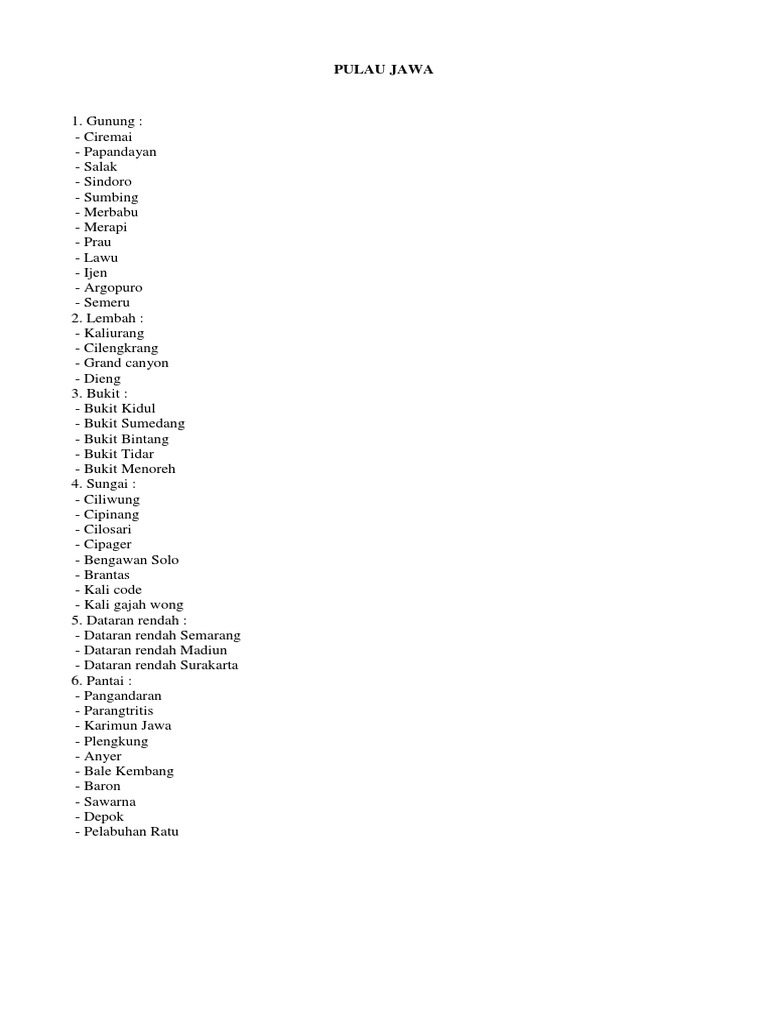 205m4d1: Nama Gunung Lembah Bukit Sungai Dataran Rendah Pantai Di Pulau Jawa