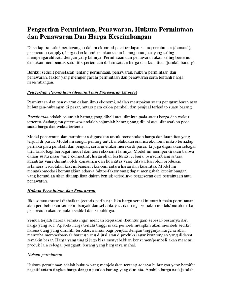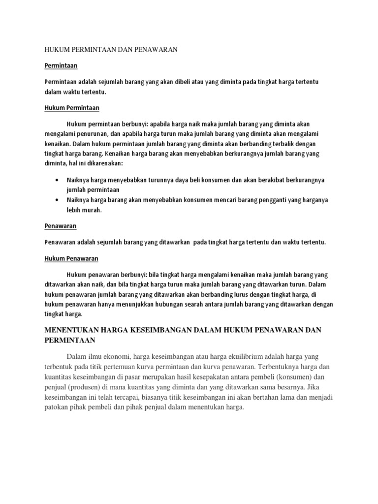 DOC) HUKUM PERMINTAAN DAN PENAWARAN | ita mandasari - Academia.edu