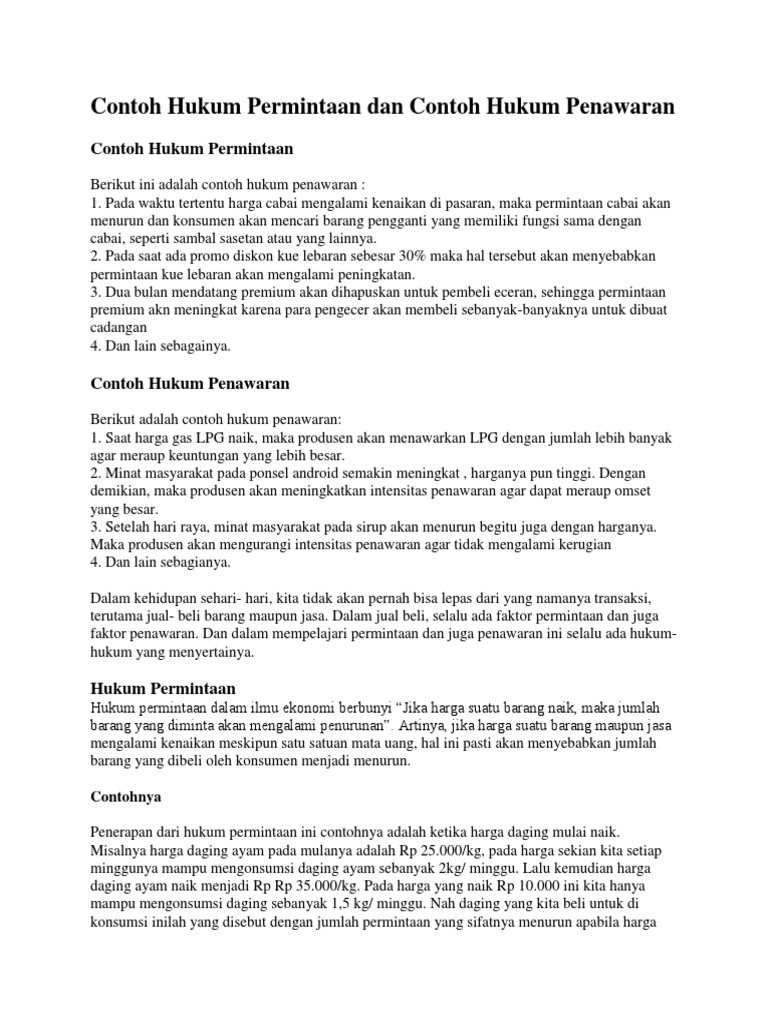 Contoh Hukum Permintaan Dan Contoh Hukum Penawaran