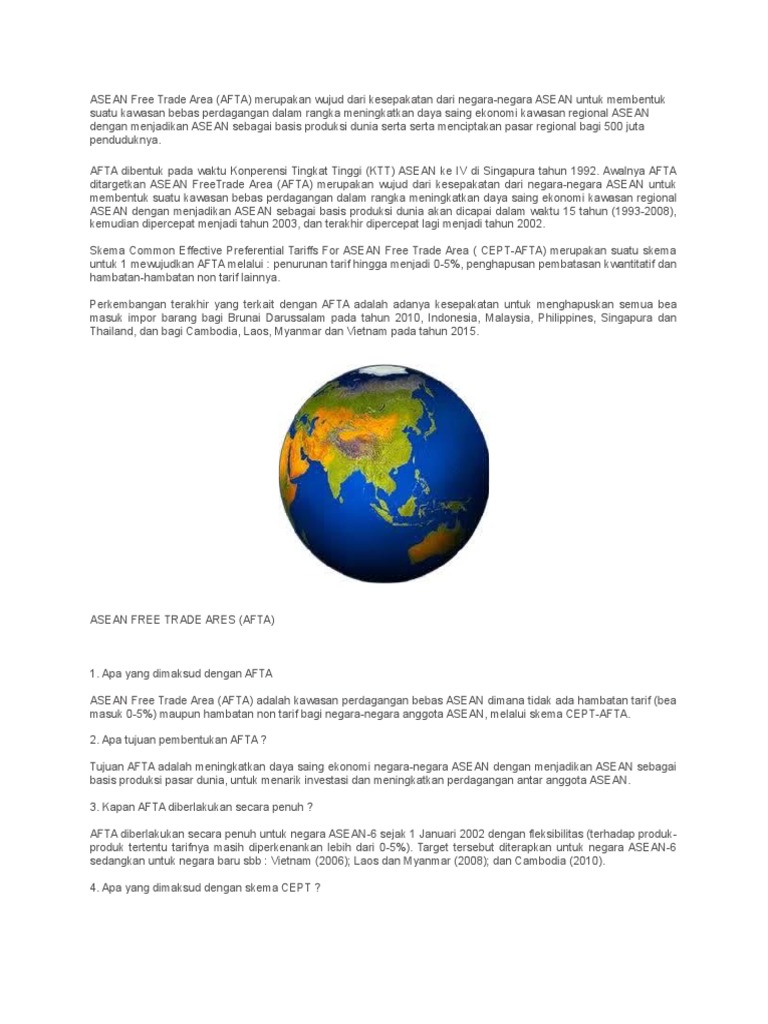 Afta Adalah - Pengertian, Latar Belakang, Anggota Dan Manfaat