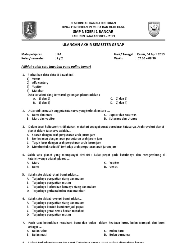 Soal Dan Kunci Jawaban Ipa Kelas 9 Semester 1 - Guru Galeri
