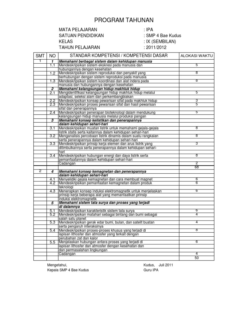 Silabus Ipa Smp Kelas 9 Semester 1-Berkarakter