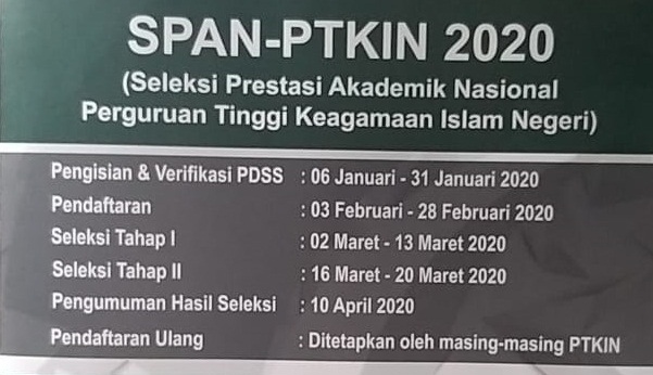 Pendaftaran Mahasiswa Baru Jalur SPAN-PTKIN Tahun Akademik 2020/2021