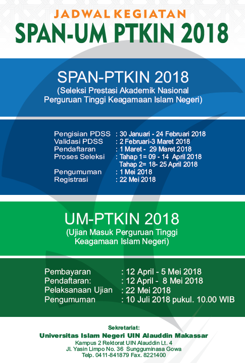 JADWAL PMB JALUR – SPAN-PTKIN 2018 – PMB UIN MALANG