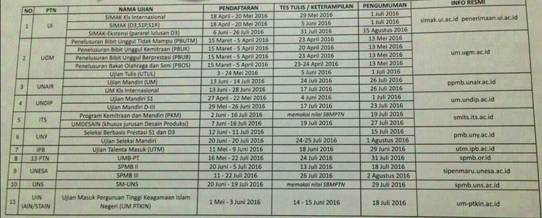 Jadwal Seleksi Mahasiswa Baru PTN 2016/2017 – SeputarKampus.Com