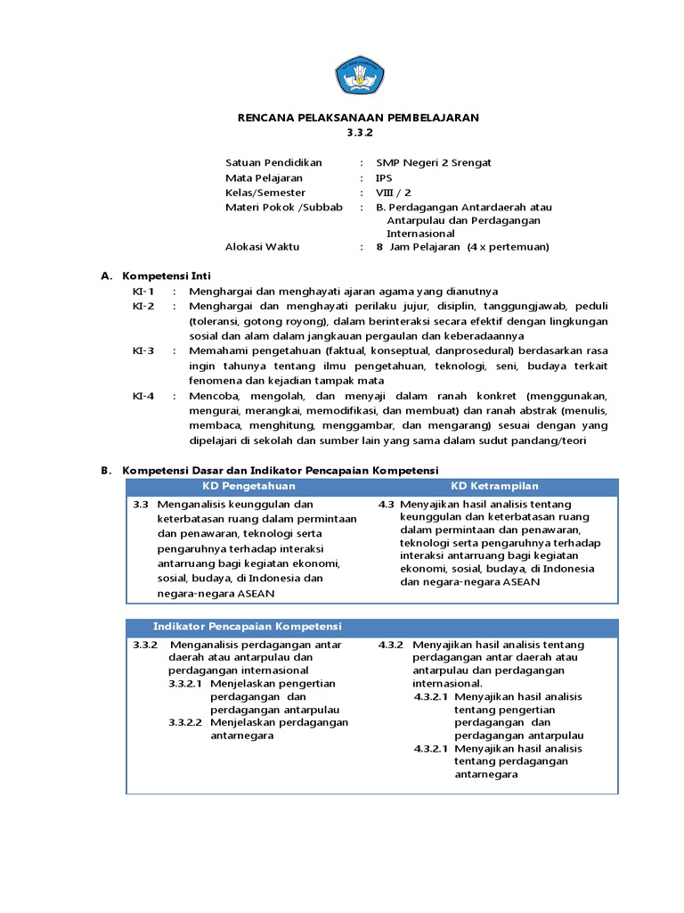 RPP IPS Perdagangan Antardaerah atau Antarpulau dan Perdagangan Internasional Kelas 8