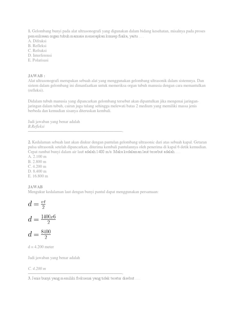 Kumpulan Soal dan Pembahasan Fisika – Gelombang bunyi …
