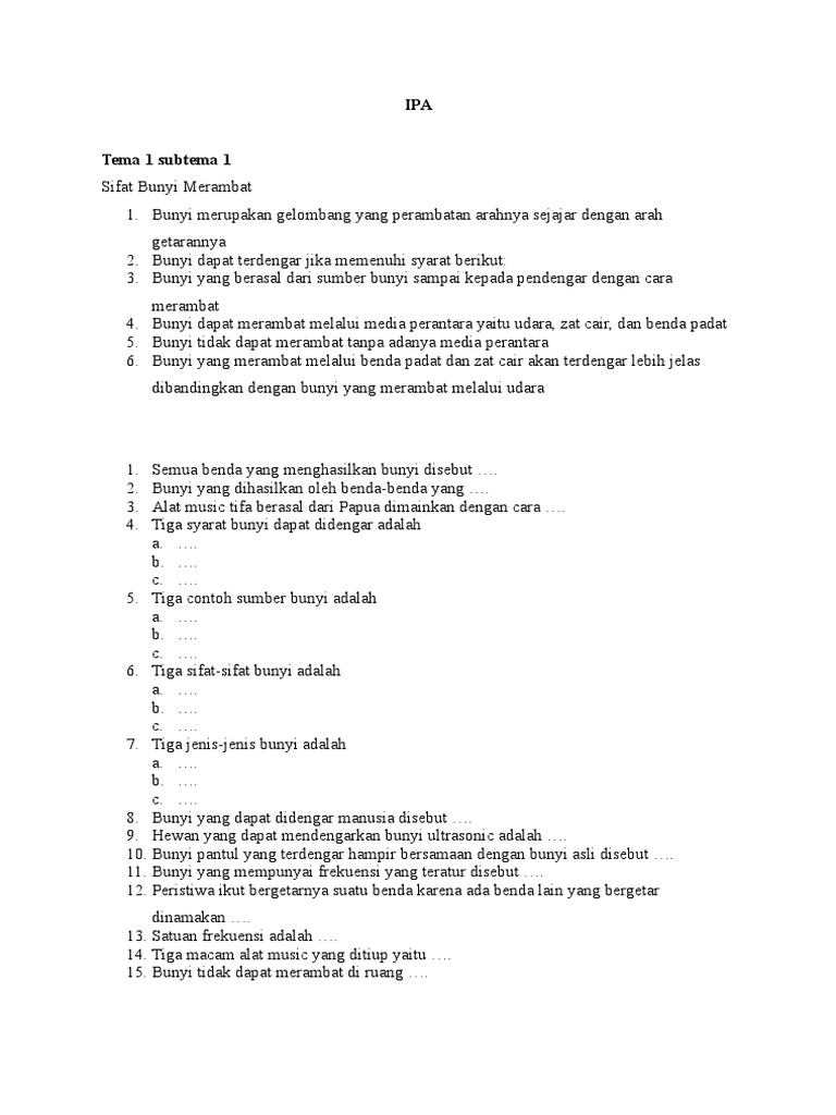 1.bunyi yang mempunyai frekuensi teratur disebut2.bunyi yang …