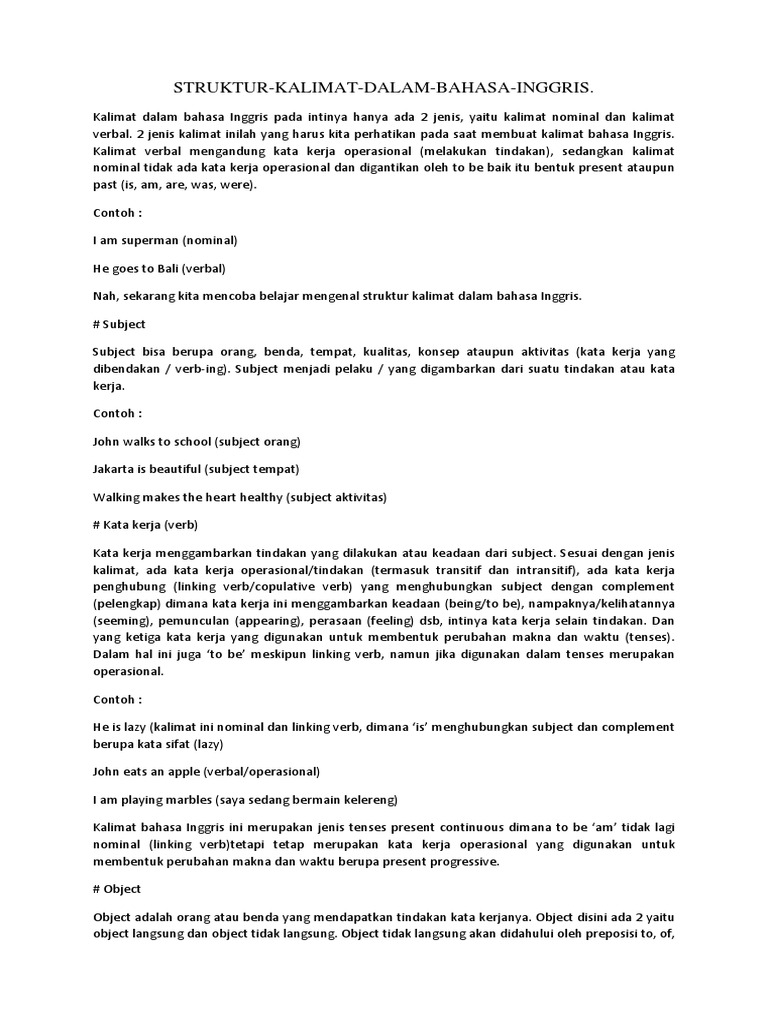 Contoh Kalimat Intransitive Verb Dalam Bahasa Inggris (30 …