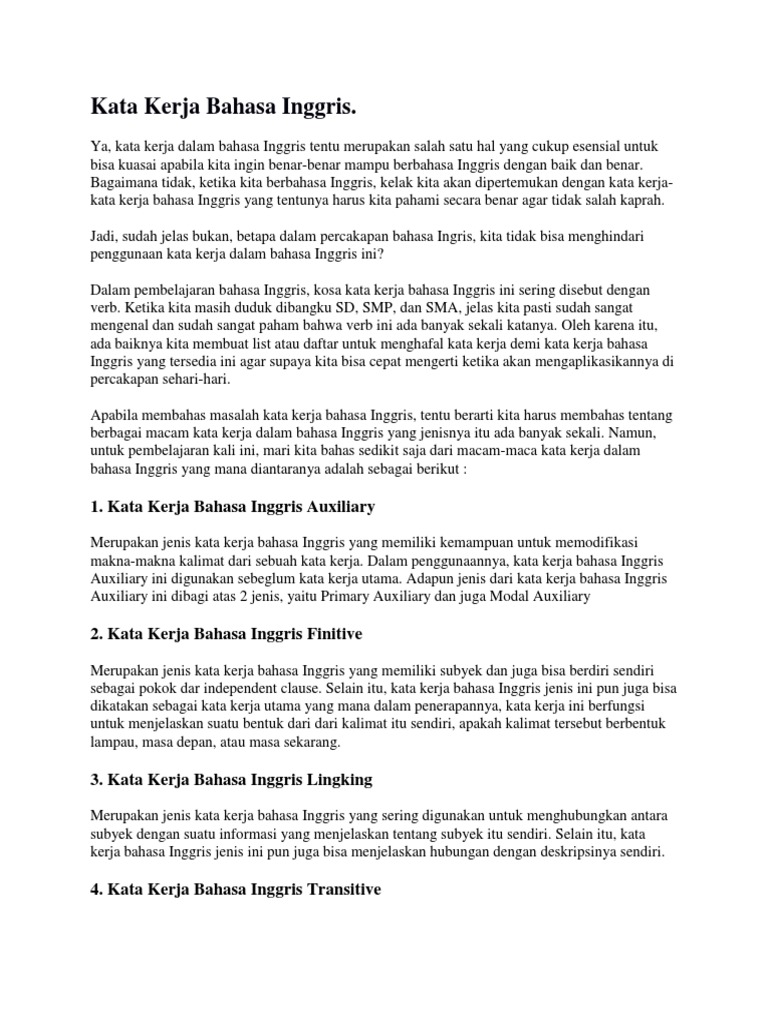 Kata Kerja Bahasa Inggris dan Jenisnya | Kursus Kampung Inggris …