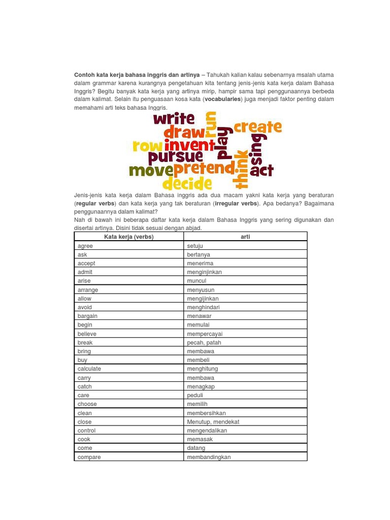 Contoh Kata Kerja Bahasa Inggris Dan Artinya