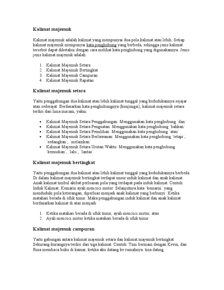 Contoh Kalimat Majemuk Setara Dan Bertingkat - Mosaicone