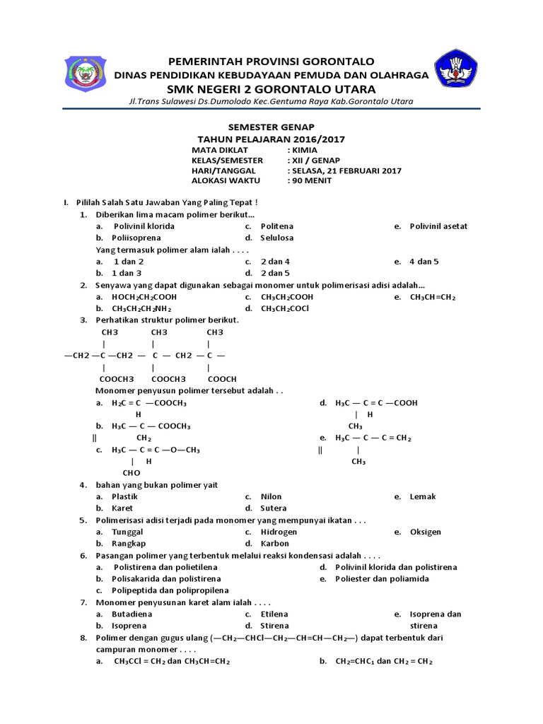 Senyawa Polimer - Soal CF =CF CH =CH-CH halaman 1 .K13 Antiremed …