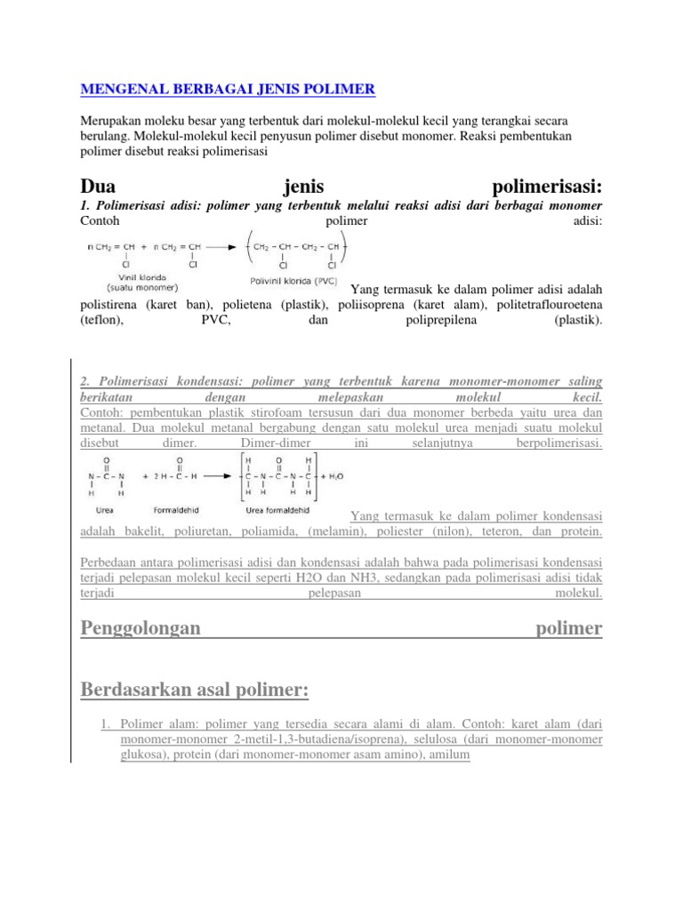 Kimia Polimer (Makromolekul) - Contoh di Alam, Klasifikasi dan …