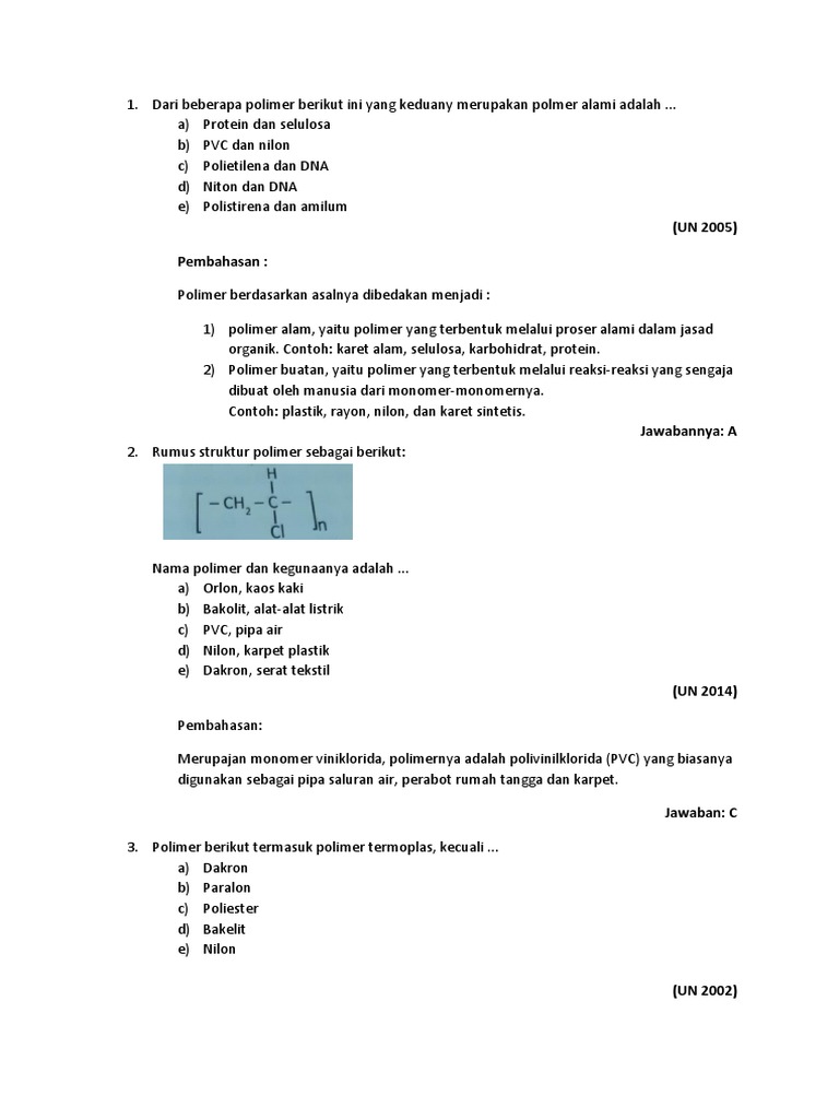 Contoh soal polimer dan pembahasannya – Soalfismat.com