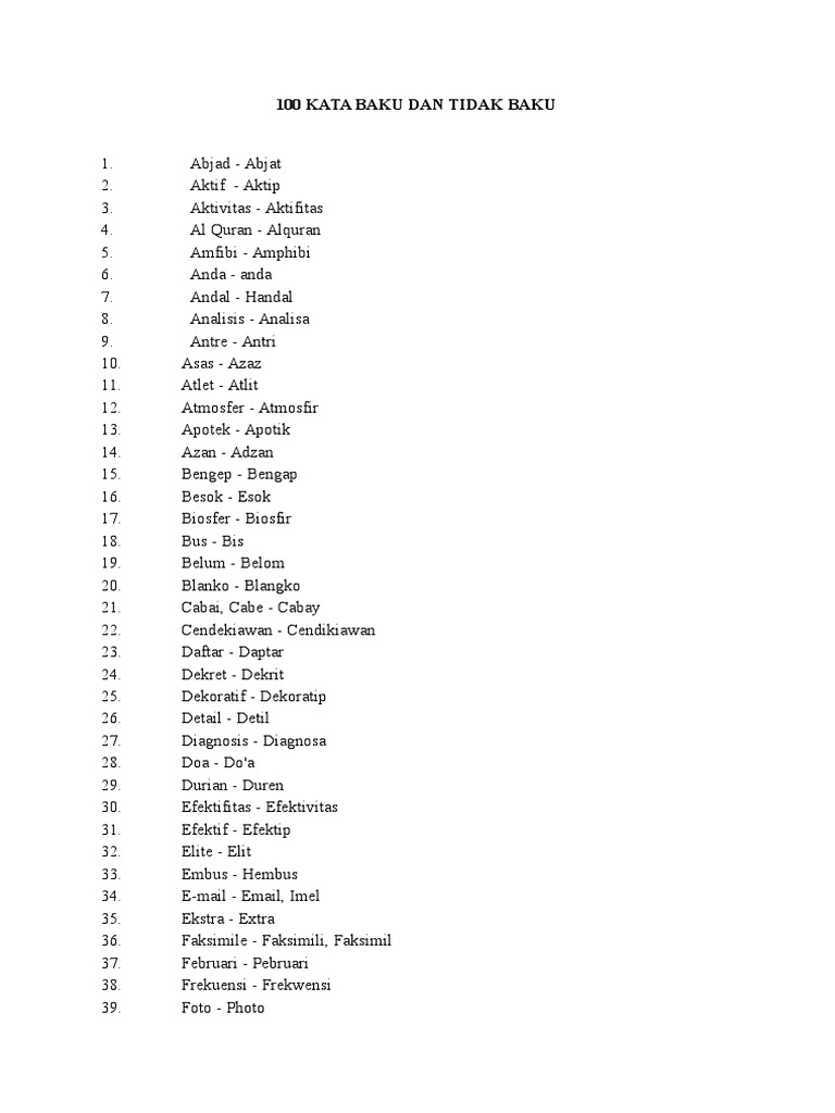 100 CONTOH KATA BAKU DAN TIDAK BAKU LENGKAP - Tentang Bimbingan …