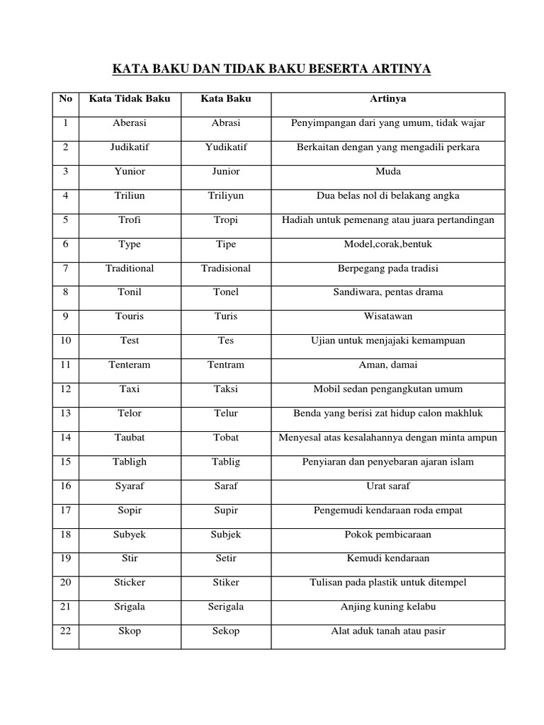 kata baku dan tidak baku beserta artinya – Pelajaran Sekolah Online