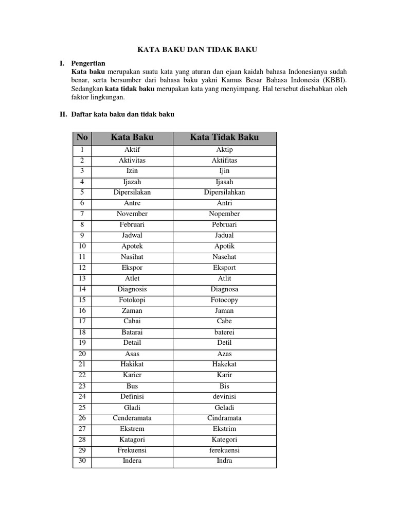 Pengertian Kata Baku Dan Tidak Baku Beserta Contohnya - Pengertian …