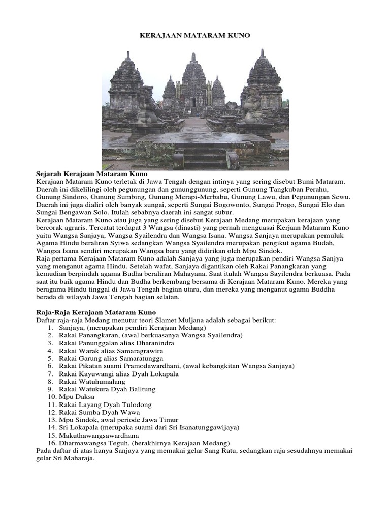 Kerajaan Mataram Kuno (Kerajaan Medang) ⋆ DOC | PDF ⋆ Download …