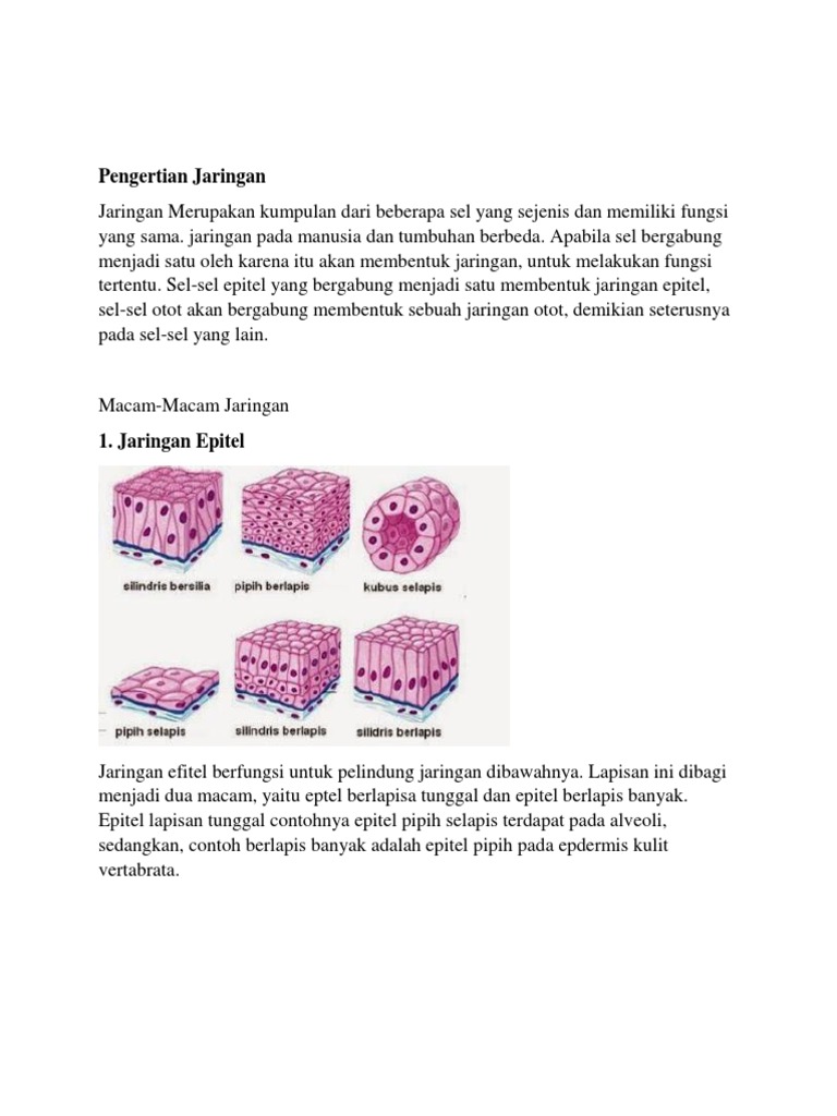 Jaringan adalah kumpulan dari selsel sejenis atau berlainan jenis termasuk matrik antar selnya yang mendukung fungsi organ atau sistem tertentu. - PDF Free Download