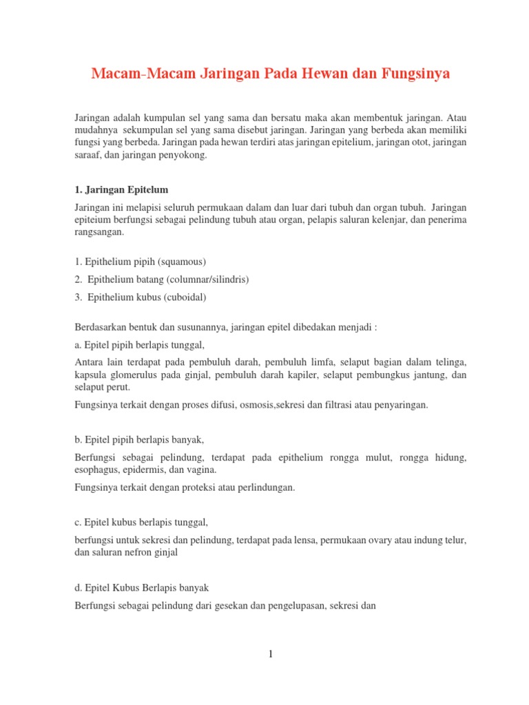 Macam-Macam Jaringan Pada Hewan dan Fungsinya - awalilmu.com