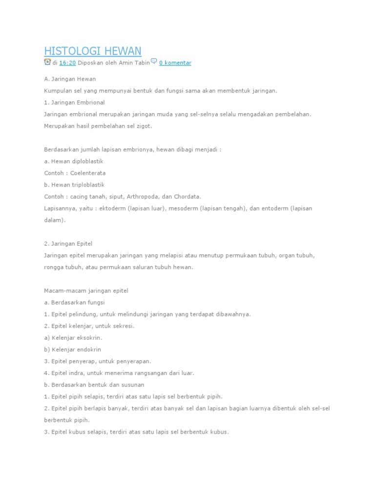 Jaringan Embrional,Jaringan Epitel dan Jaringan Otot – Blog Biologi