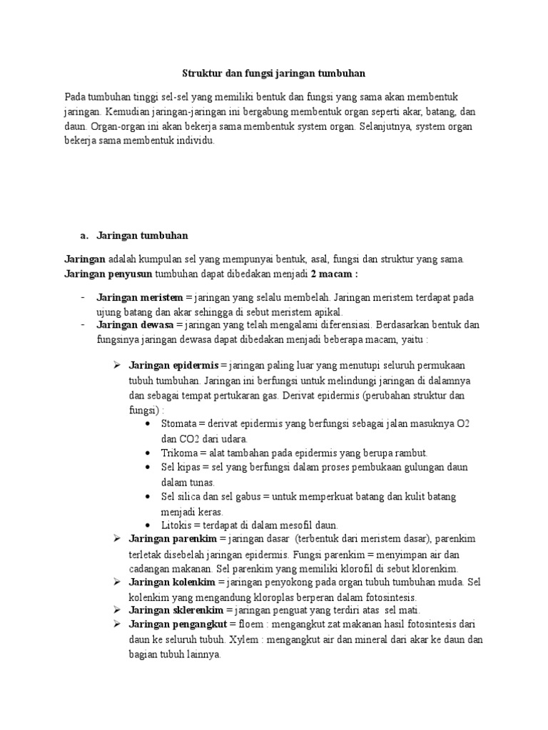 Struktur Dan Fungsi Jaringan Tumbuhan