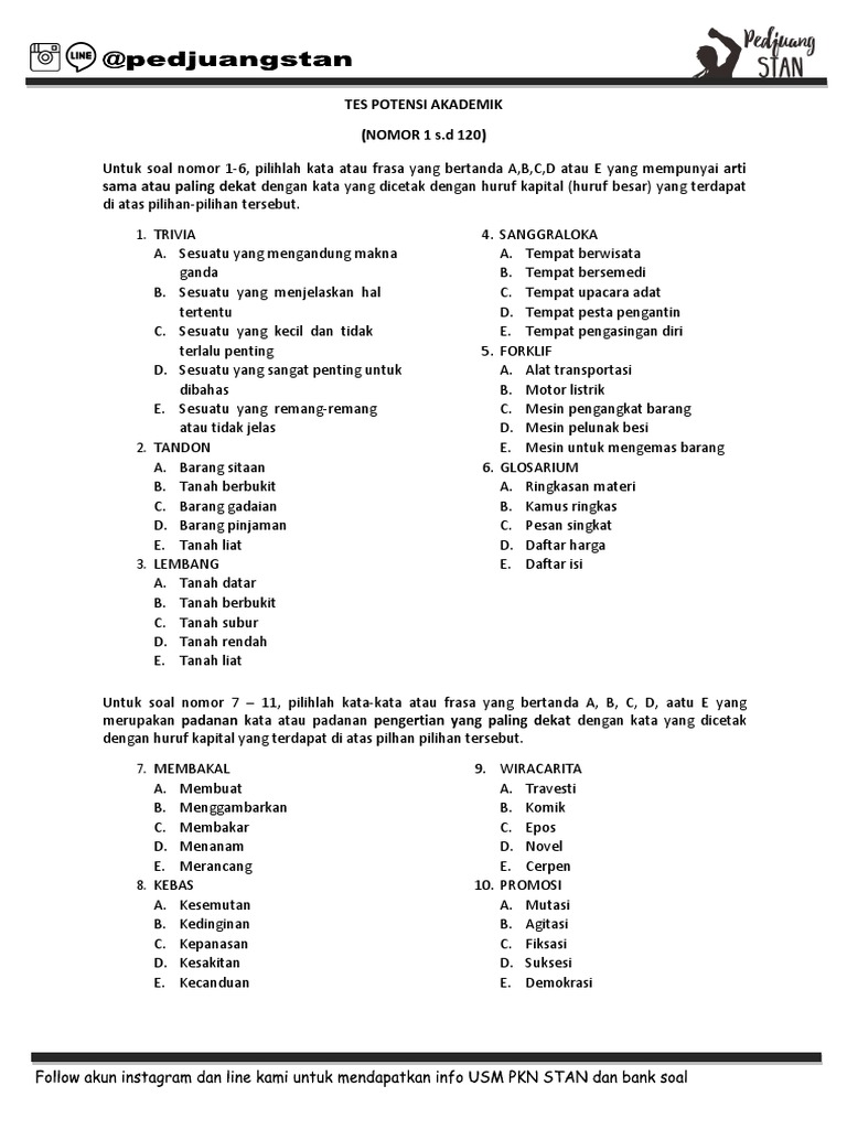 Contoh Soal Tpa Stan Beserta Jawaban - Soal-Soal