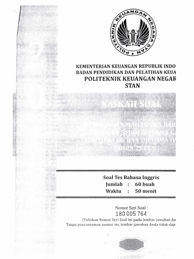 Download Soal Seleksi PMB PKN STAN 2017 TPA dan Bahasa Inggris …