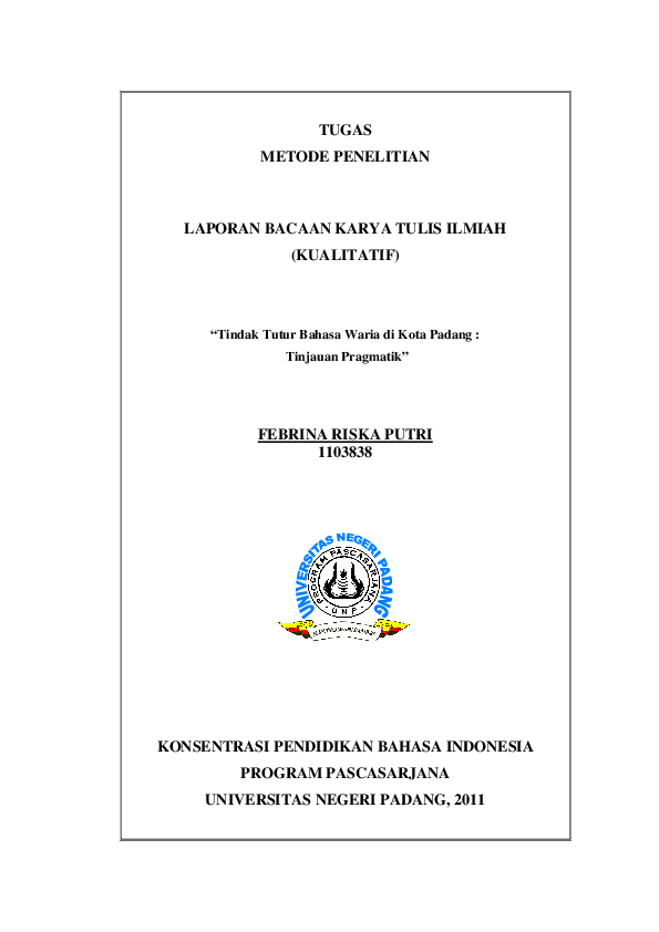PDF) TUGAS METODE PENELITIAN LAPORAN BACAAN KARYA TULIS ILMIAH …