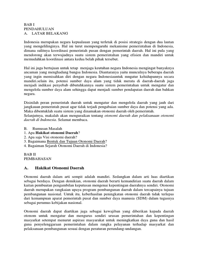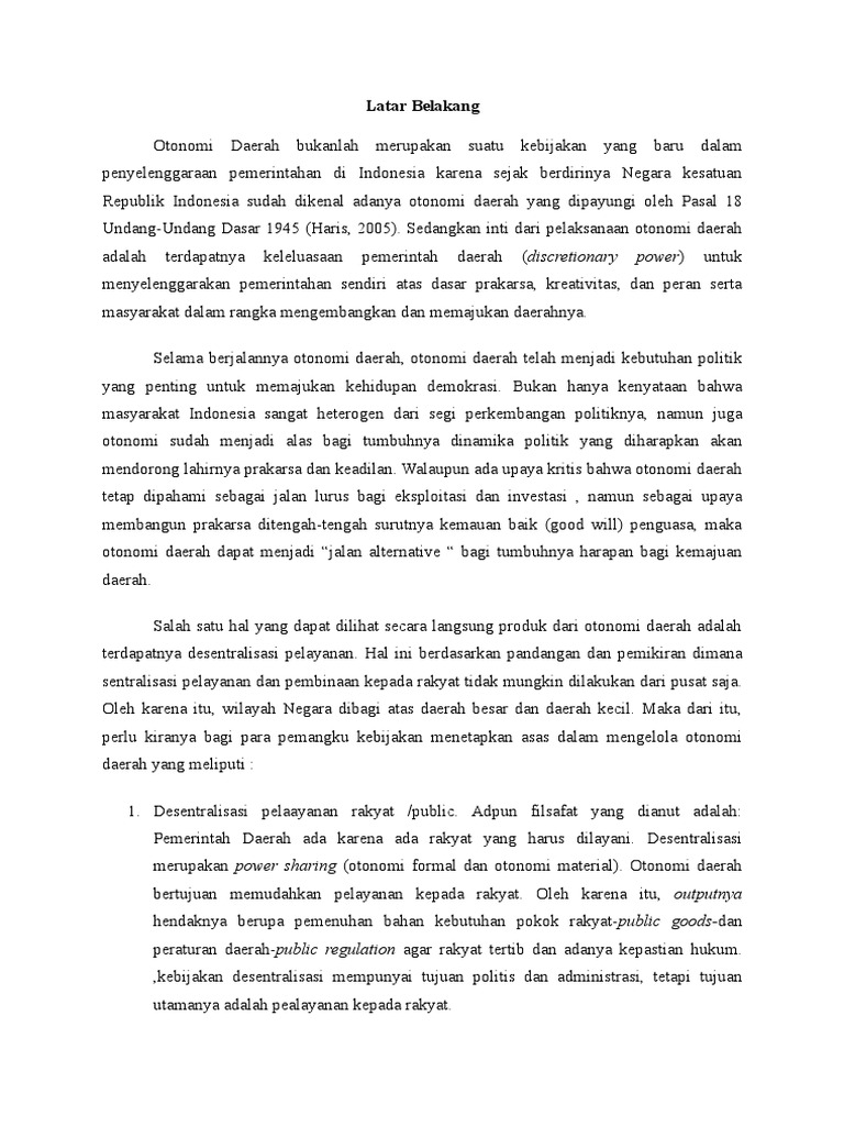 DOC) Latar Belakang Otonomi Daerah | Rasyidin William - Academia.edu
