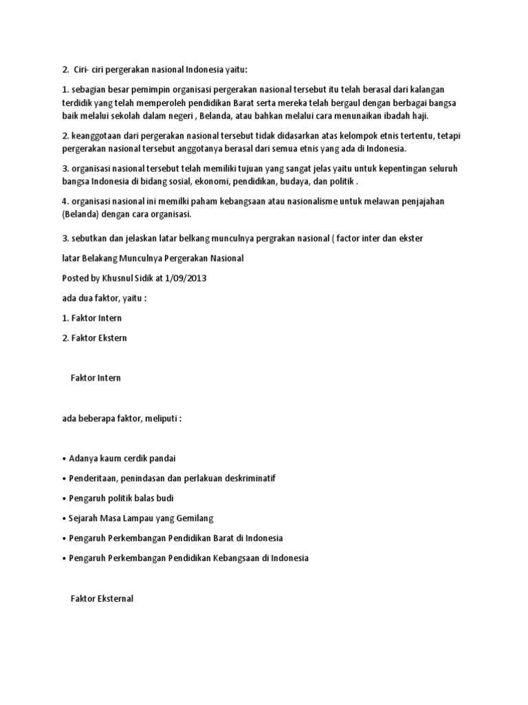 Jelaskan Masing Masing 3faktor Lahirnya Pergerakan Nasional Indonesia Baik Internal Maupun Eksternal - video.SportNK