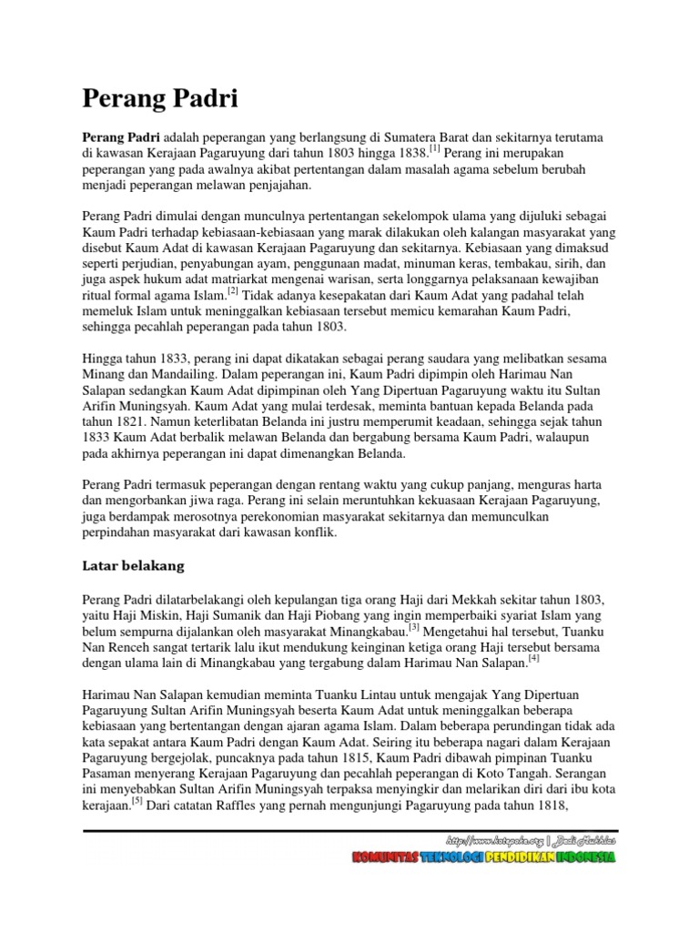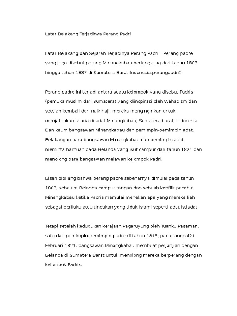 Sebutkan 3 Latar Belakang Perang Padri Di Minangkabau Sumatera …