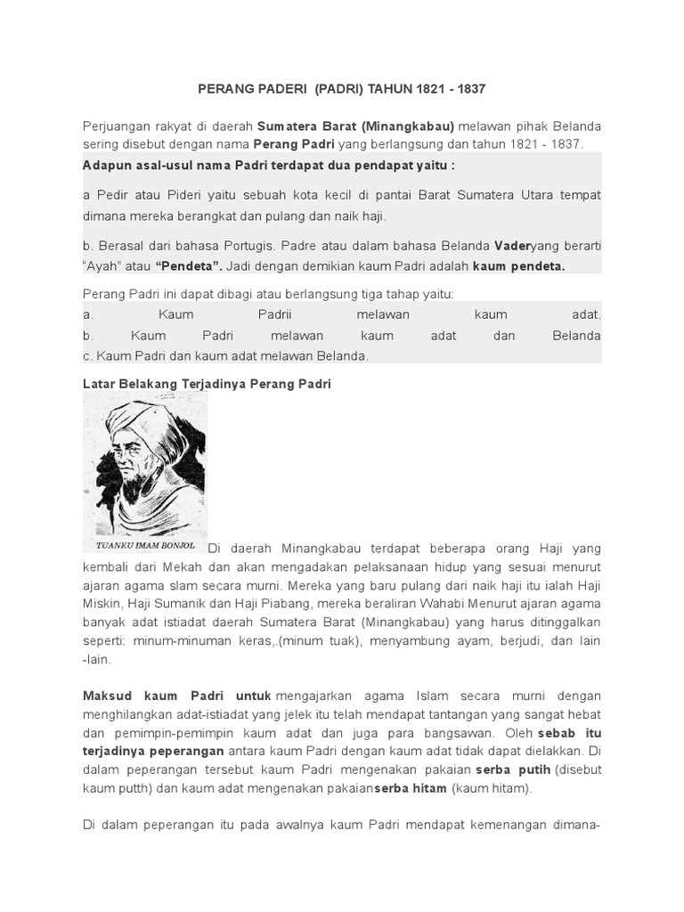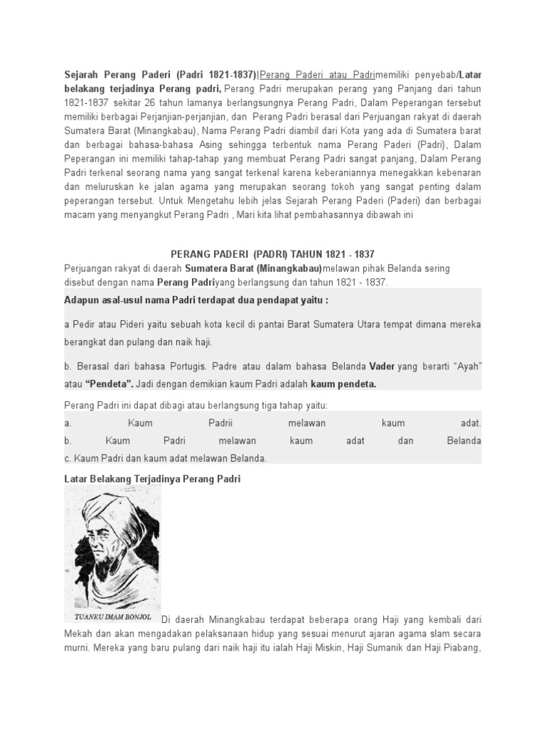 Latar Belakang Terjadinya Perang Padri dan Sebab Tuanku Imam …