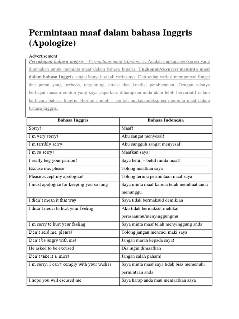 Macam-macam Ungkapan Maaf dalam Bahasa Inggris | Bahasa Inggris …