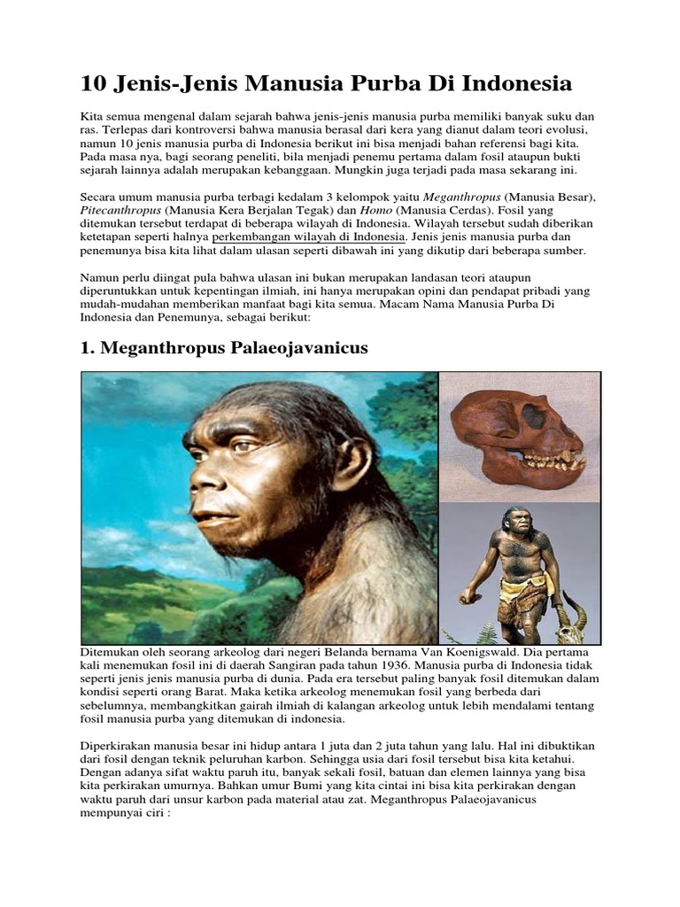 Jenis Manusia Purba di Indonesia Beserta Gambar - PDF Download Gratis