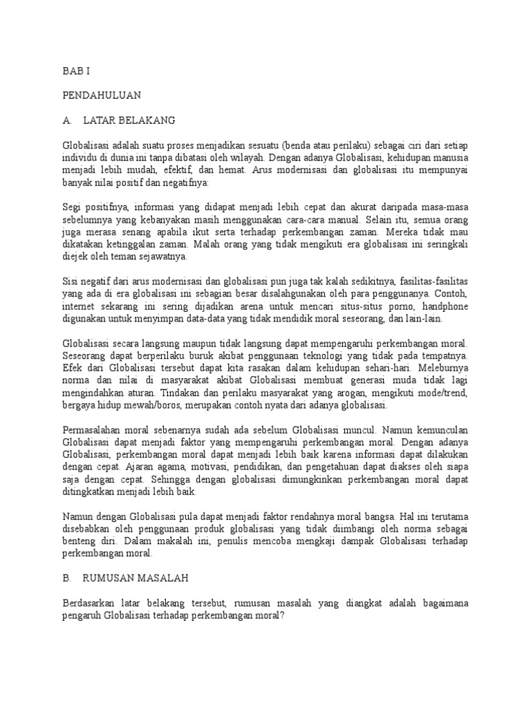 DOC) Pengaruh Globalisasi Terhadap Nilai Moral Suatu Bangsa …