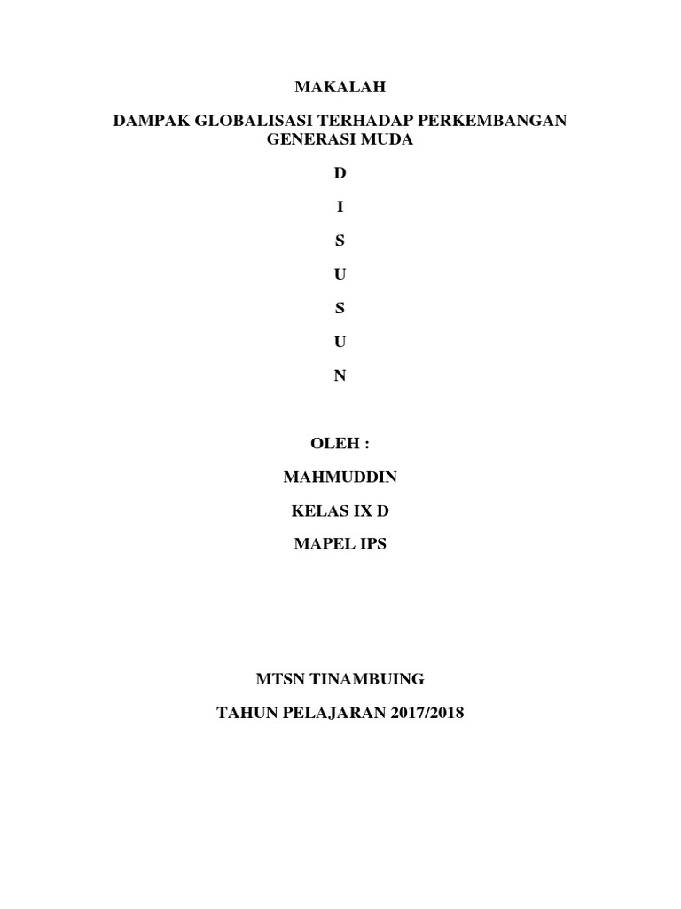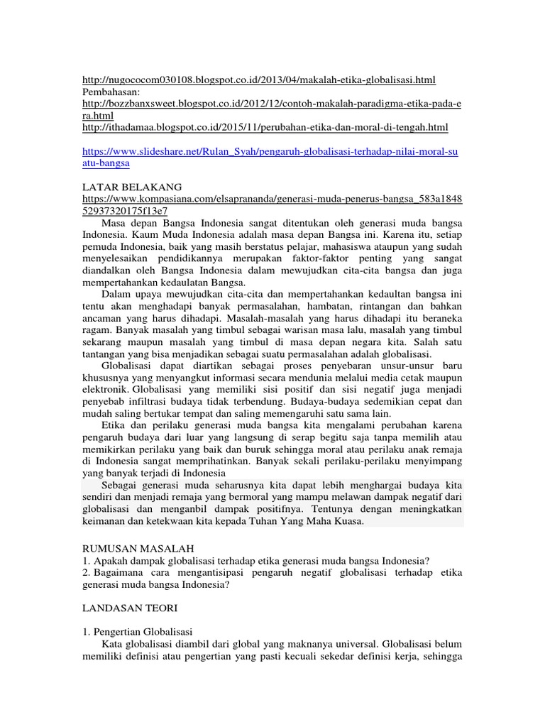DOC) MAKALAH GLOBALISASI PADA GENERASI MUDA.docx | Bayu Sugara …