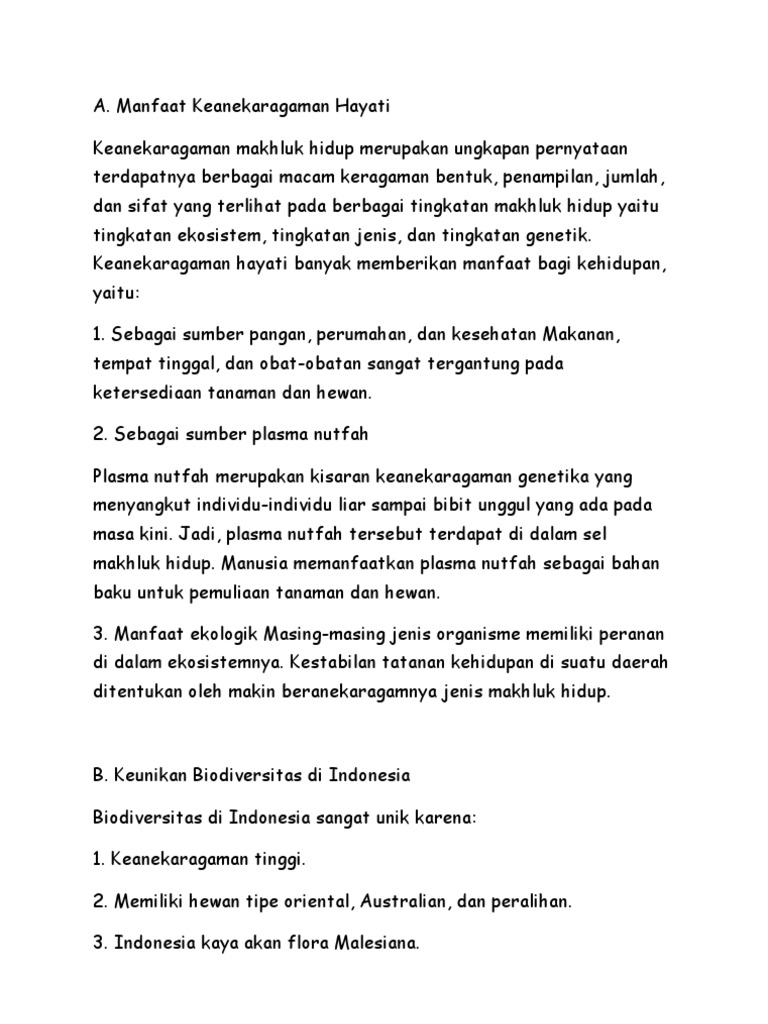 jelaskan manfaat keanekaragaman hayati di indonesia sebagai …