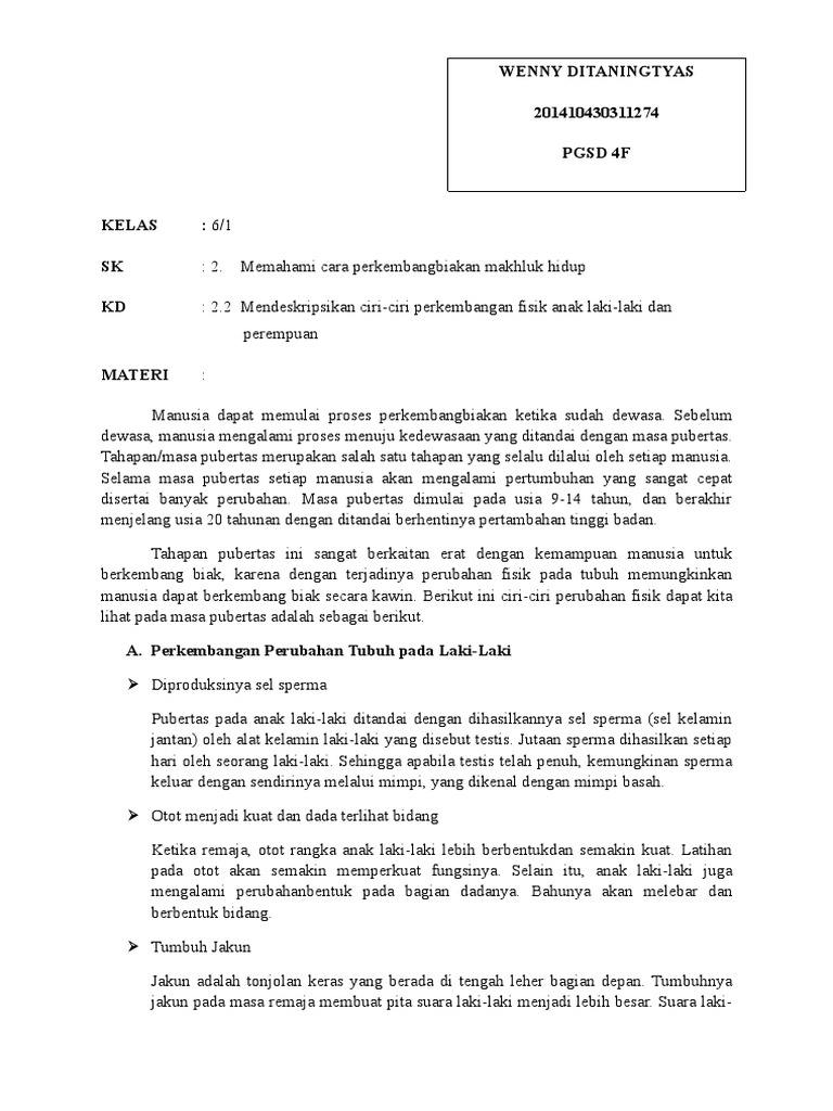 Soal K13 Kelas 6 SD Tentang Masa Pubertas - Kumpulan Soal