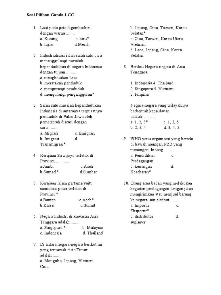 50 Pilihan Ganda Unsur Geografi, Penduduk Asia Tenggara + Kunci …