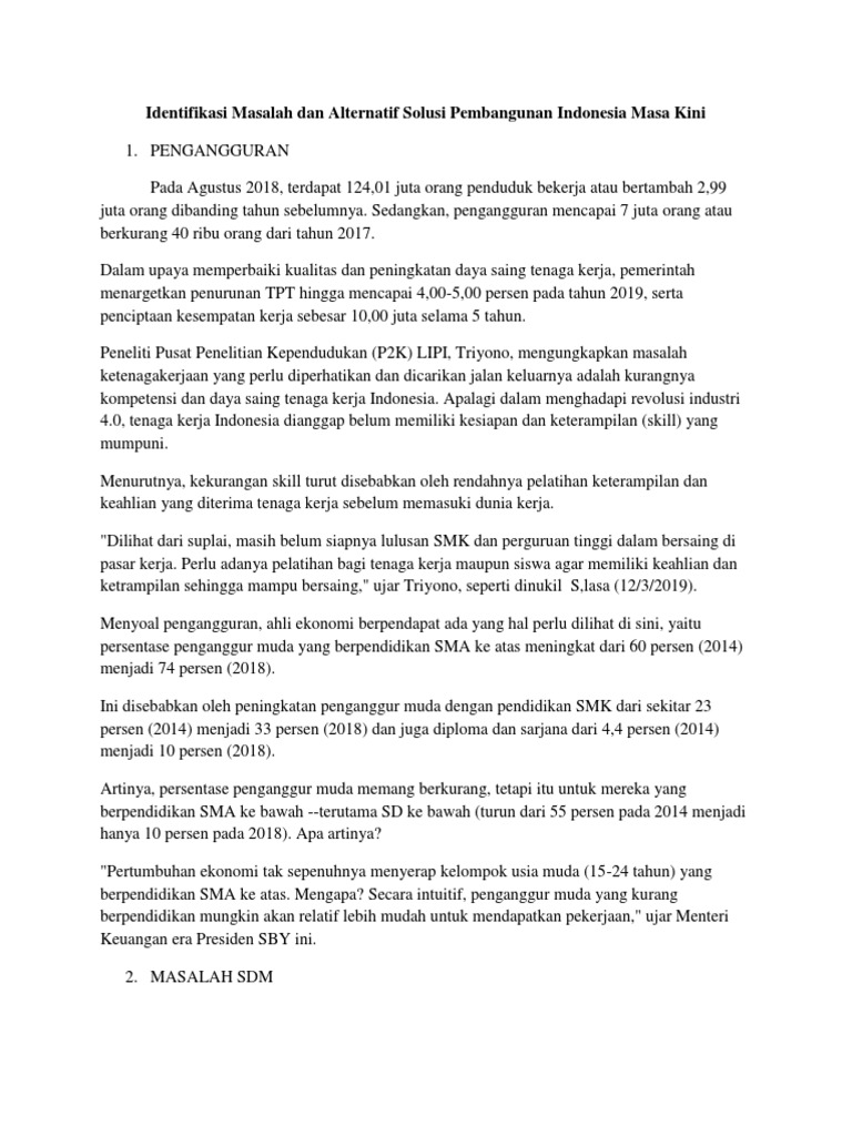 Identifikasi Masalah dan Alternatif Solusi Pembangunan Indonesia …